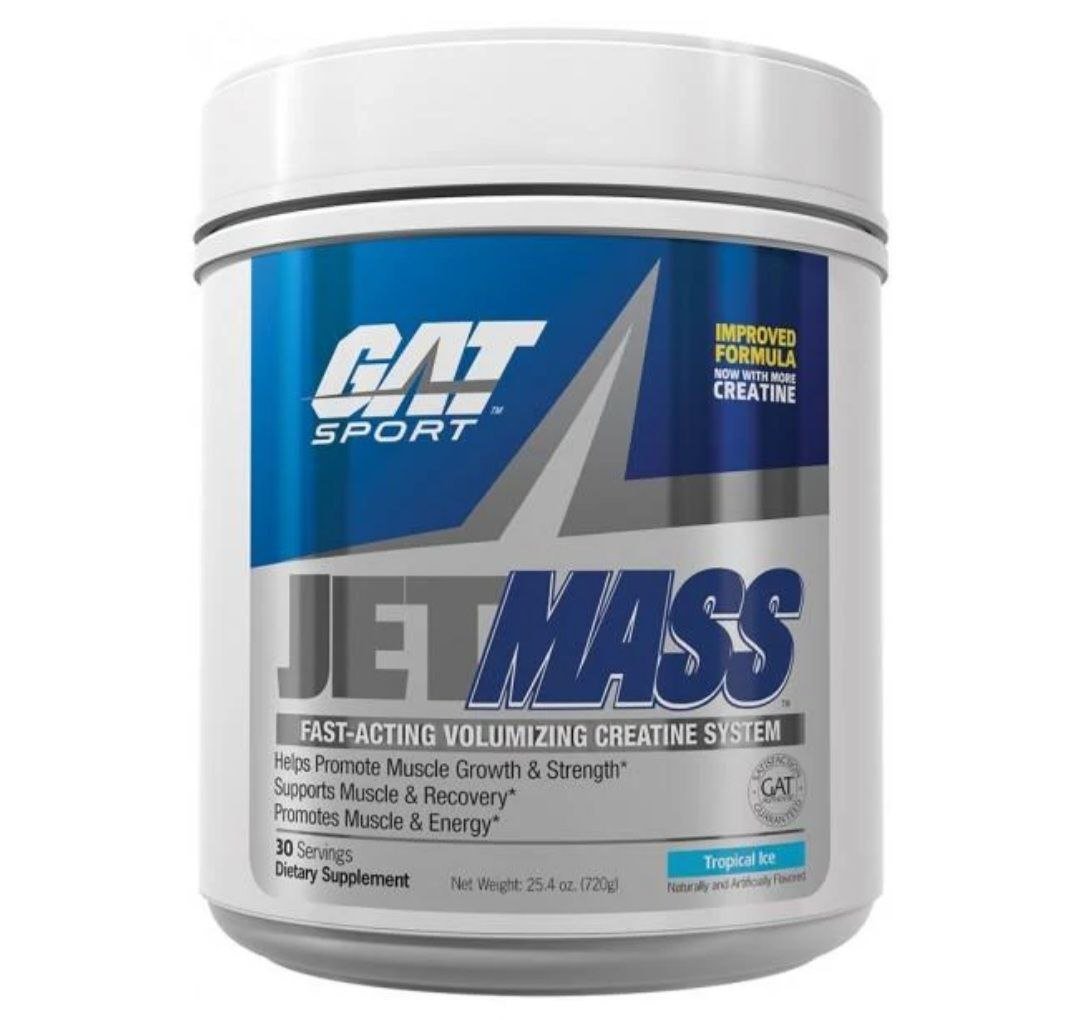 Jet Mass de GAT Sport es una fórmula post-entrenamiento que combina 5 g de creatina monohidratada Creapure® con 13 g de carbohidratos de rápida absorción, BCAA y glutamina. Esta combinación favorece la absorción de creatina, mejora la energía muscular y acelera la recuperación, ayudando a aumentar la masa muscular y la fuerza.